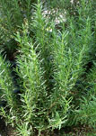 Common Rosemary, Rosmarinus officinalis. Rosemary has a bitter, astringent taste with an intense, fragrant aroma which complements many cooked foods. The leaves are used as a flavoring in foods such as stuffing, roast lamb, pork, chicken, and turkey. Rosemary is used abundantly in French, Spanish, and Italian cooing.