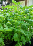 Thai Basil, Ocimum basilicum thyrsiflora. It’s flavor is described as anise, licorice-like, and slightly spicy. Thai Basil is more stable under high or extended cooking temperatures than that of sweet basil. Thai basil leaves are a frequent ingredient in Thai cuisine such as green and red curries, drunken noodles, and many chicken, pork, and seafood dishes.