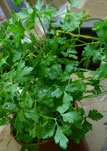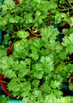 Santo Cilantro, Coriandrum sativum, is also known as Coriander, Cilantro, Mexican Coriander, and Chinese Parsley. The leaves have a different taste from the seeds, with citrus overtones or refreshing lemony or lime-like flavor. The fresh leaves are an ingredient in many Indian foods, Chinese salads, Thai dishes, and Mexican cooking, salsas, and garnishes.